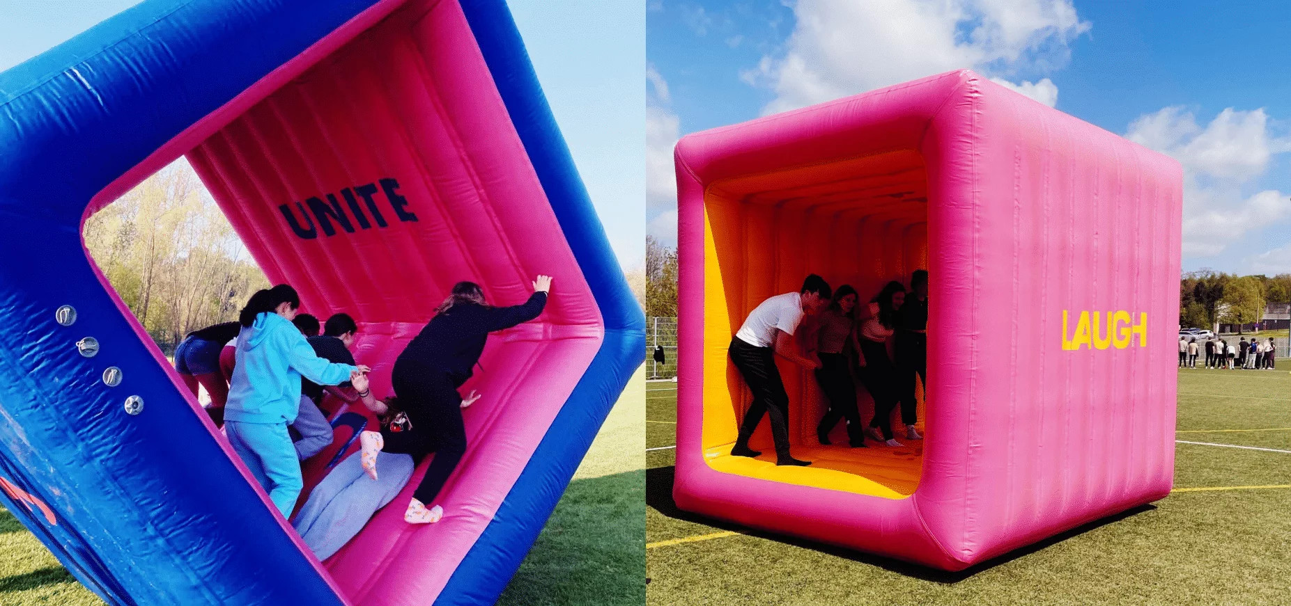 Teamwork makes the dream work. Bundel de krachten van je team samen en probeer het Flip-it kussen te doen kantelen. Deze attractie is de perfecte aanvulling op elke teambuilding en groepsactiviteit! V-Formation heeft 4 Flip-it's in het gamma (verschillende kleurencombo's), bij deze attractie is een begeleider verplicht.